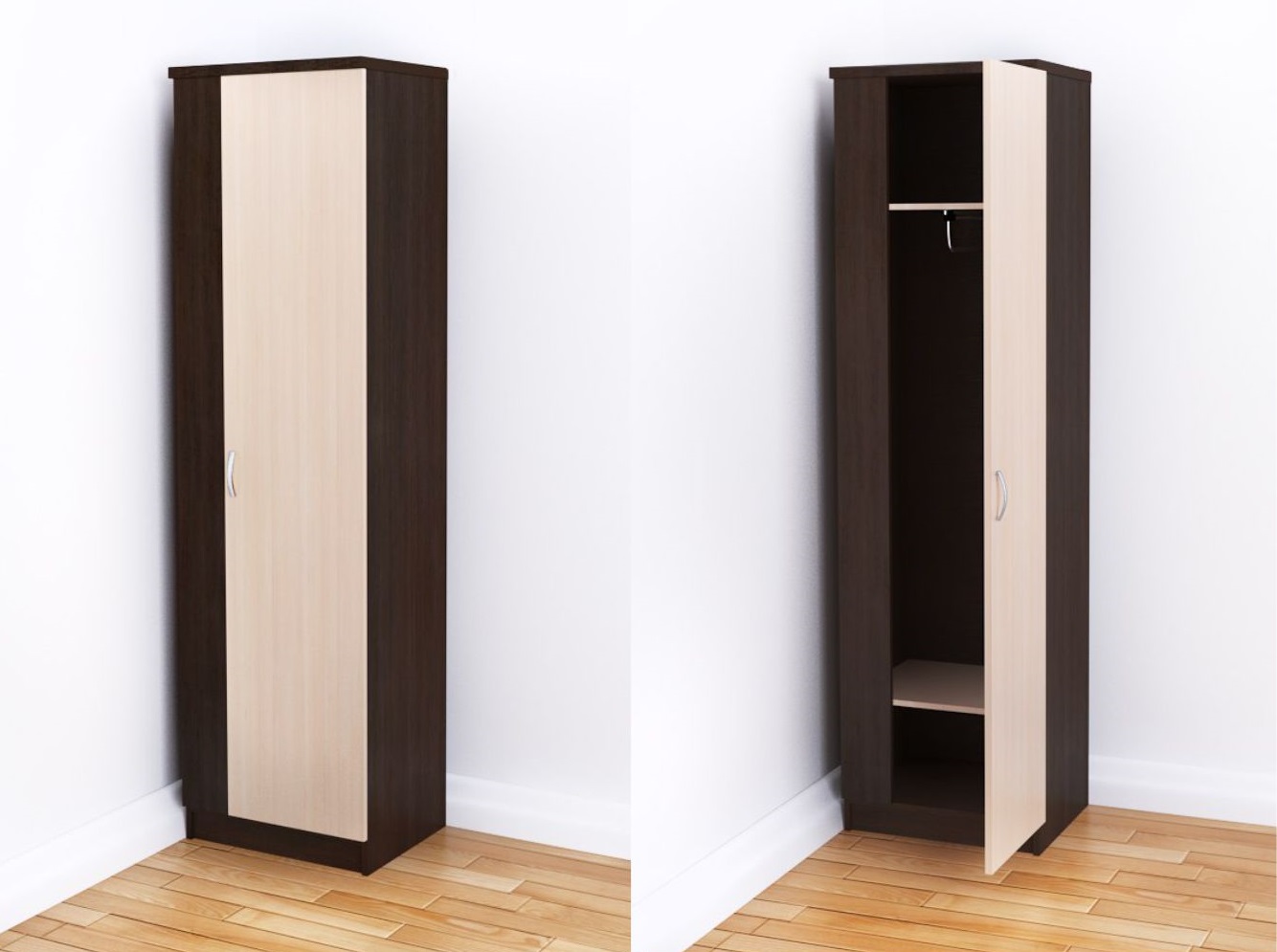 An der Wand montiert... Traditionelle Optionen, die am bequemsten und einfachsten zu installieren und zu bedienen sind. Präsentiert in einem sehr großen Sortiment. Diese Sorten werden entlang einer der freien Wände im Raum platziert. Das Wandmodell kann einflügelig sein, Sie können aber auch eine zweitürige Version wählen.