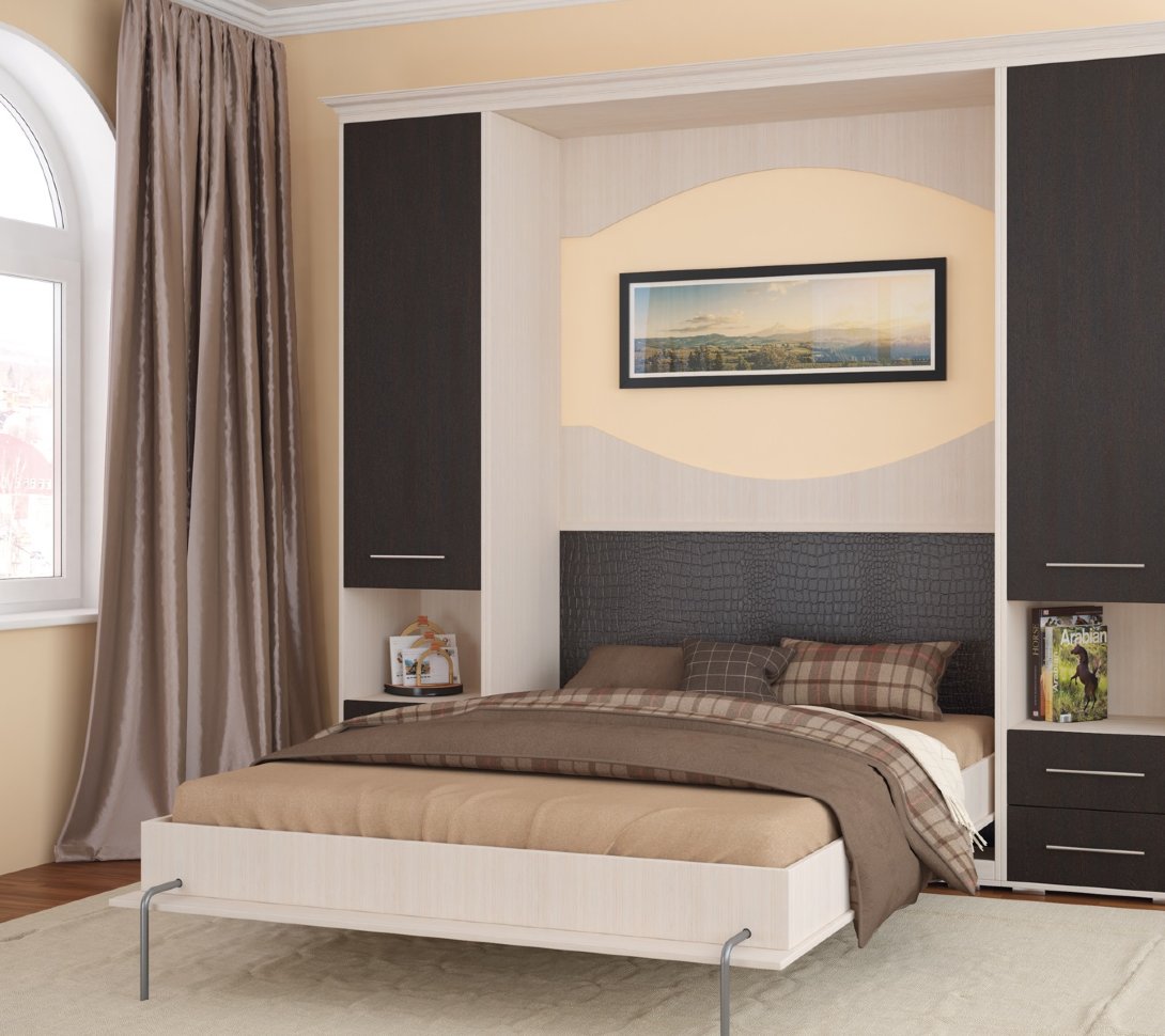Entwurf... Achten Sie unbedingt auf das Aussehen der Möbel. Es sollte sowohl dem Stil als auch der Farbe des umgebenden Schlafzimmerinterieurs entsprechen. Nur dann fügt sich die Garderobe leicht und harmonisch in die Umgebung ein, sie wird nicht aus ihr herausgeschlagen.