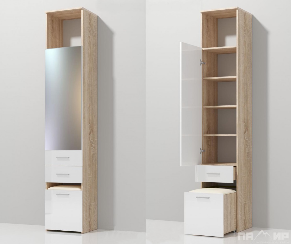 - Regale... Standard Schrankkomponenten. Durch diese Elemente ist es möglich, den Innenraum effektiv zu planen.