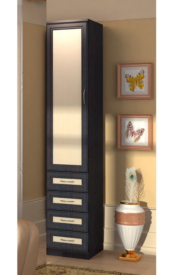 Es gibt auch sehr schöne und komfortable Schränke mit Spiegel und anderen Zusatzelementen zu verkaufen. Die Größe und Struktur solcher Möbel variiert ebenfalls. Käufer können zwischen schmalen und breiteren Optionen wählen. Die Wahl des perfekten Designs hängt vom Grundriss und der Quadratur des Schlafzimmers ab.