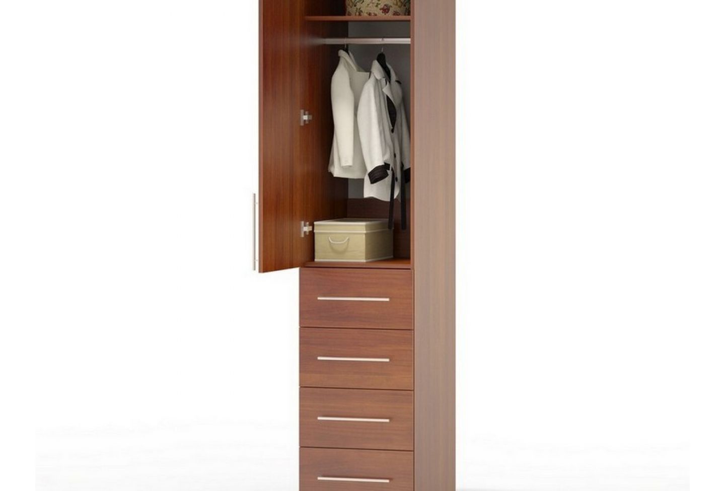 Überlegen Sie, welche Elemente verwendet werden, um die innere Füllung von Schränken im Schlafzimmer zu bilden.
