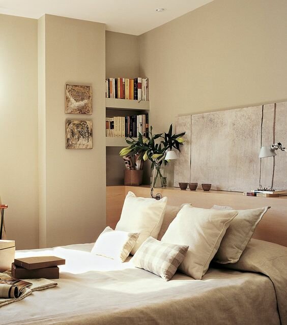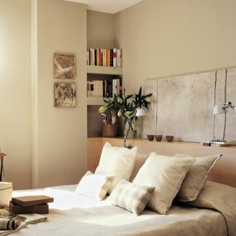 - Wenn das Schlafzimmer mehr Platz hat, dann können Sie während des Reparaturvorgangs spezielle Nischen aus Trockenbauwänden herstellen. Es ist besser, sie im Voraus zu entwerfen und über die Länge und Breite nachzudenken.