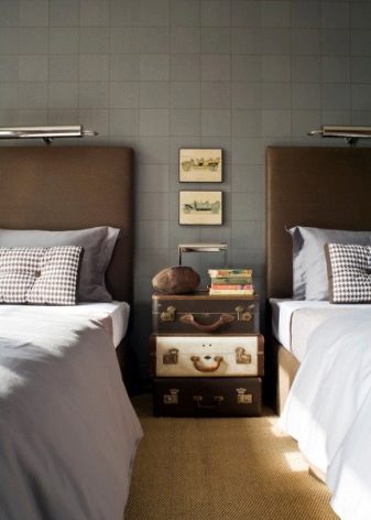Wenn Ihnen aus irgendeinem Grund keine der vorgeschlagenen Optionen gefallen hat, sollten Sie Ihre eigene Vorstellungskraft mit der Sache verbinden. Schließlich können Sie, wenn Sie logisch denken, anstelle eines Nachttisches fast jeden Gegenstand installieren, der zur Aufbewahrung gedacht ist und zumindest in der Größe entfernt geeignet ist - Kisten, Koffer, Kisten, Regale, Taschen usw. Die wichtigste Bedingung ist, dass es für die Person bequem ist, den Ersatz des Nachttisches zu verwenden.