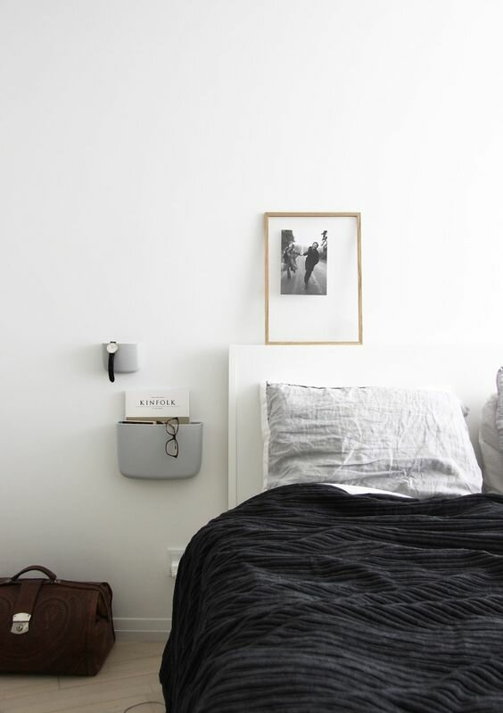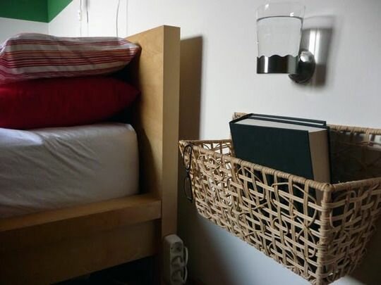 - Eine gute Alternative sind spezielle Körbe oder Aufbewahrungsboxen. Diese können in jedem Baumarkt oder Möbelgeschäft erworben werden. Der Korb kann neben das Bett gestellt werden und dort die nötigen Kleinigkeiten (Handy, Feuchttücher, Buch und vieles mehr) ablegen.