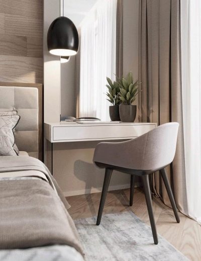 Wenn Sie keine Lust auf Korb, Leiter oder Trittleiter haben, können Sie den Nachttisch durch einen Schminktisch ersetzen. Von den Abmessungen her steht er natürlich einem Nachttisch in nichts nach, ist aber mobiler.
