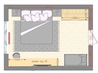 im Schlafzimmer 3x4 - U-förmiges Layout, angepasst an die Eigenschaften des Raumes;