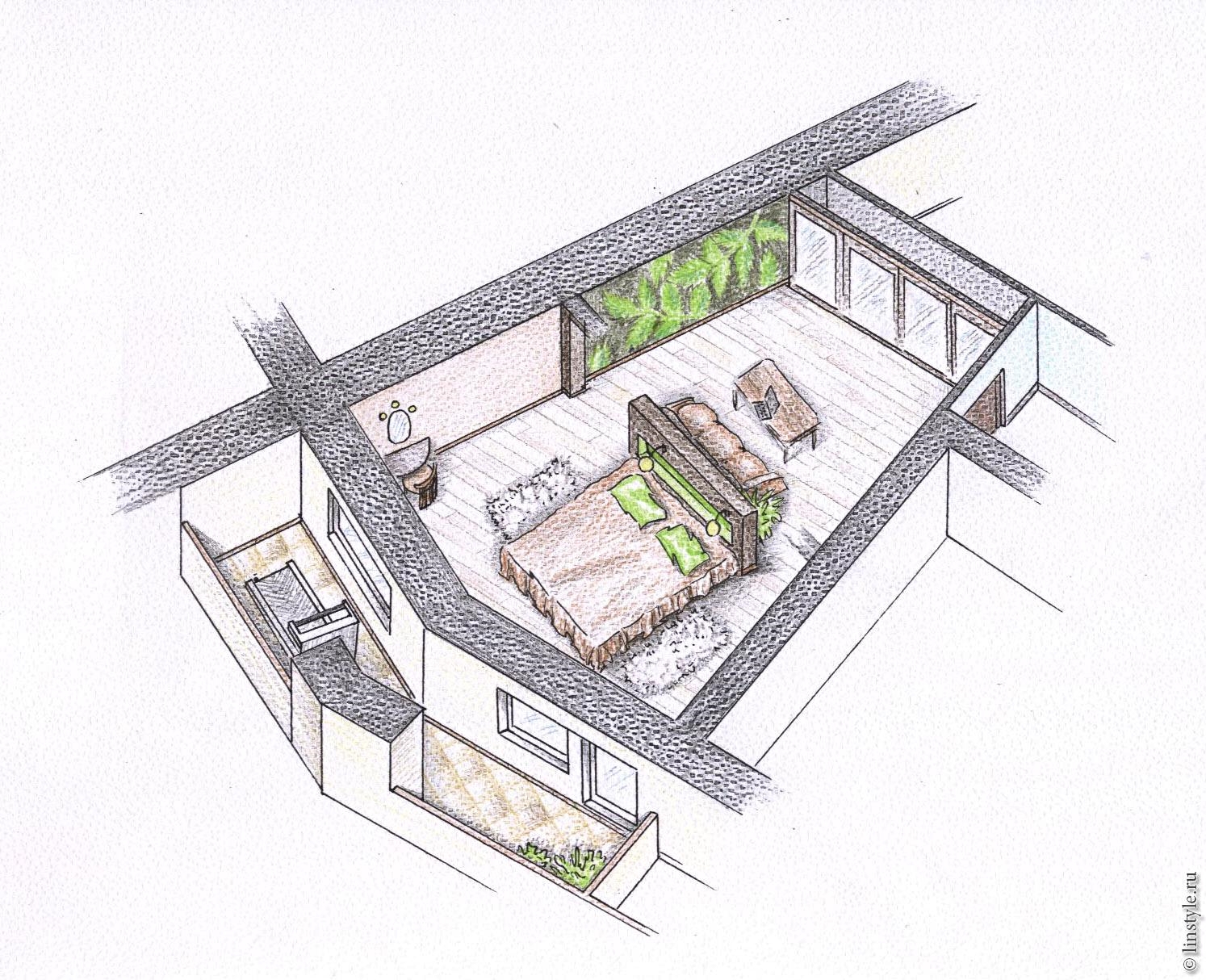 Wenn das Schlafzimmer schließlich eher wie ein Trapez aussieht, müssen Sie nur modulare Systeme verwenden und diese individuell anpassen - dreidimensionale Modellierung kann dabei helfen.