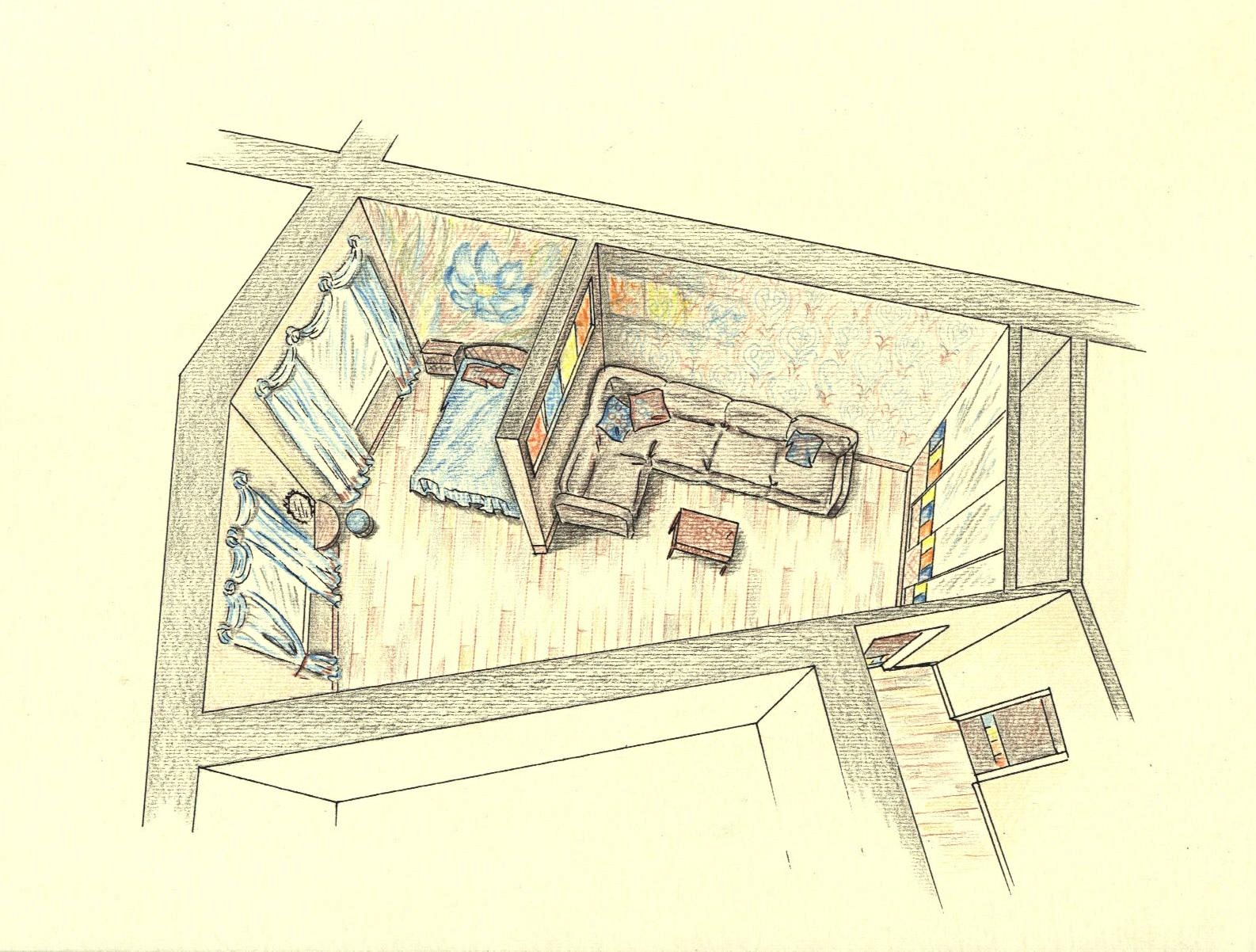 Das richtige Design eines dreieckigen Schlafzimmers stellt sich heraus aufgrund der maximalen Glättung seiner visuellen Heterogenität. Mit Hilfe einer Trennwand trennen sie den Freizeitbereich und das Büro. Wichtig: Neben der räumlichen Trennung müssen Sie auch mit der Beleuchtung richtig arbeiten. Die Bequemlichkeit eines solchen Raums hängt weitgehend von ihm ab. Besondere Aufmerksamkeit verdient das fünfeckige Schlafzimmer.