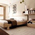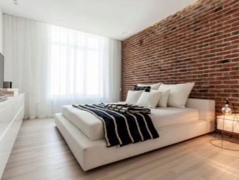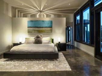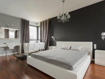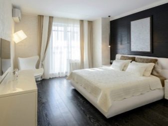 - die Kombination mehrerer Laminat- oder Parketttöne - sowohl dunkel als auch hell - verleiht dem Schlafzimmer im Stil des Minimalismus eine besondere Ausdruckskraft;