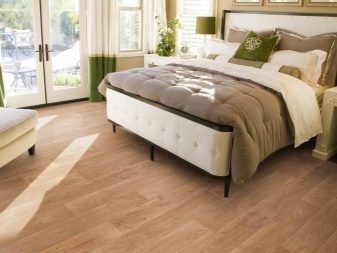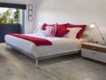 Wenn die Besitzer des Schlafzimmers mit der klassischen Version des betreffenden Materials nicht zufrieden sind, kann Marmoleum für sie geeignet sein - seine natürliche Vielfalt. Es hat die gleiche Liste von Vorteilen, ergänzt durch Umweltfreundlichkeit und antibakterielle Resistenz.