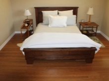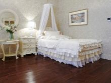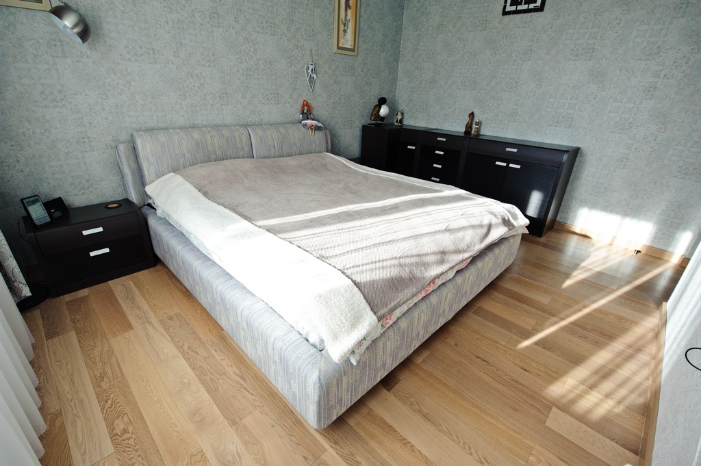 Ein weiterer Vorteil von Massivholzdielen sind gute Schallschutzeigenschaften, die den Aufenthalt im Schlafzimmer äußerst komfortabel machen. Von den Nachteilen von Naturholz ist die Notwendigkeit einer sorgfältigen Verarbeitung hervorzuheben, die gegen Insekten, Schimmel und Fäulnis gerichtet ist.