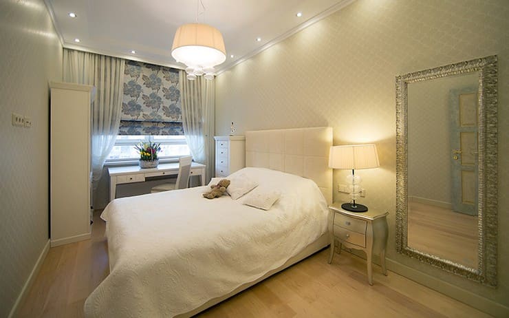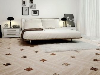 Abschließend bleiben die typischsten Beispiele für Böden im Inneren von Schlafzimmern zu betrachten und sie mit einigen nützlichen Empfehlungen zu ergänzen:
