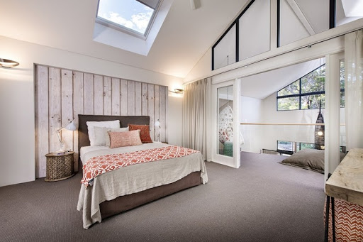 - die Verwendung von weißem Teppich in Kombination mit roten oder roten Wänden schafft einen spektakulären und faszinierenden Kontrast;