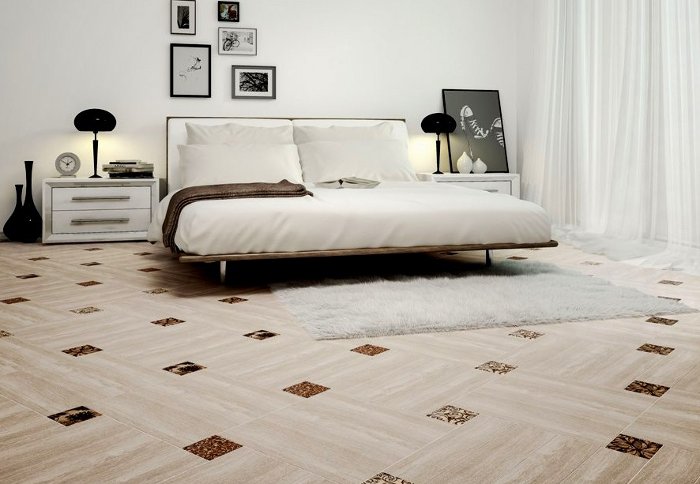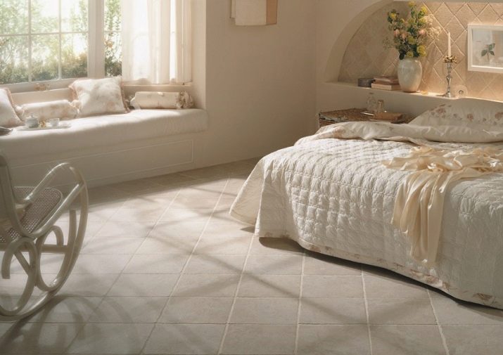 Die Praxis zeigt, dass Fliesen und Feinsteinzeug als Schlafzimmerboden selten verwendet werden. In der Regel werden sie in Räumen mit warmen Böden verwendet, ohne die sie zu kalt sind. Von den Pluspunkten der Fliese stechen die ersten heraus:
