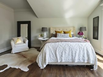 - Für Kenner der Exotik bieten die Hersteller an, das Interieur mit einem flauschigen Teppich zu dekorieren aus dem Fell von Füchsen oder sogar Wölfen. Diese Produkte verleihen dem Interieur den Stil einer Waldhütte. Sie fügen sich perfekt in das Interieur der Schlafzimmer von Landhäusern ein.