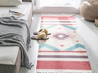 Bei der Auswahl eines bestimmten Interieurs ist es wichtig, auf die charakteristischen Merkmale des Stils und der Art des Materials zu achten. Zum Beispiel, ethnische Variante müssen aus natürlichen Textilien (Wolle, Seide, Baumwolle) bestehen. Es sollte sich durch ein geometrisches Muster auszeichnen, das die Genauigkeit und Dichte des Webens anzeigt.
