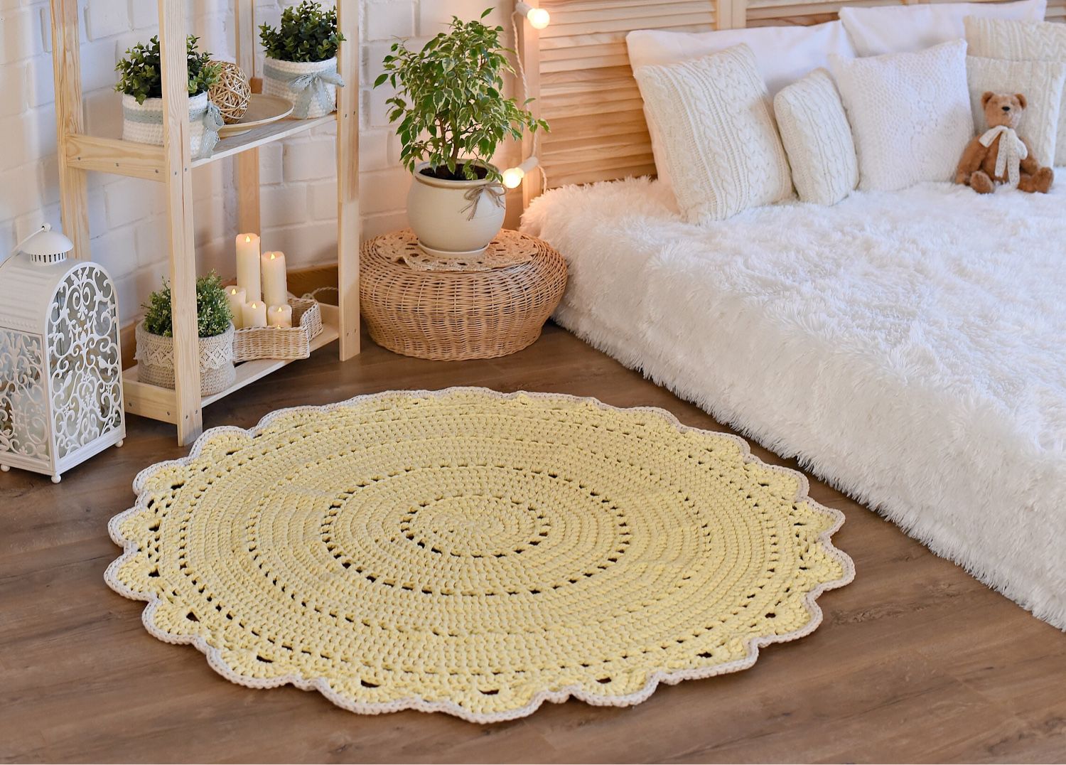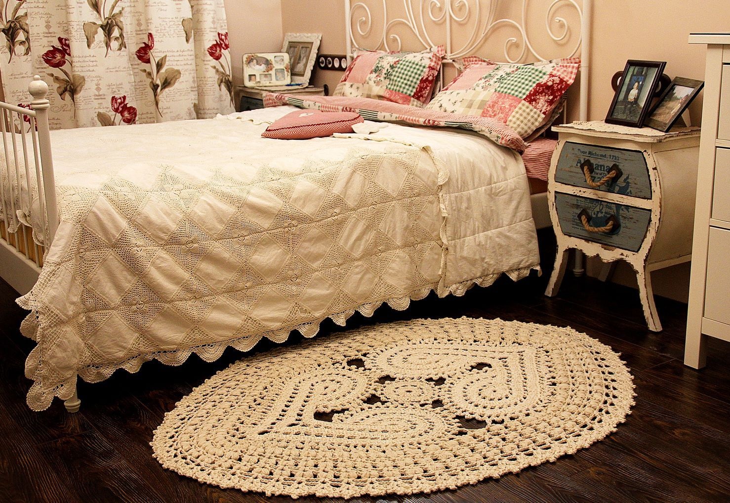 Rechteckige Produkte werden für Schlafzimmer mit konservativem oder strengem Stil gekauft. Es ist eine großartige Wahl, um einem minimalistischen Schlafzimmer Gemütlichkeit zu verleihen. Die gehäkelte Option passt perfekt in das Innere eines Landes oder der Provence.