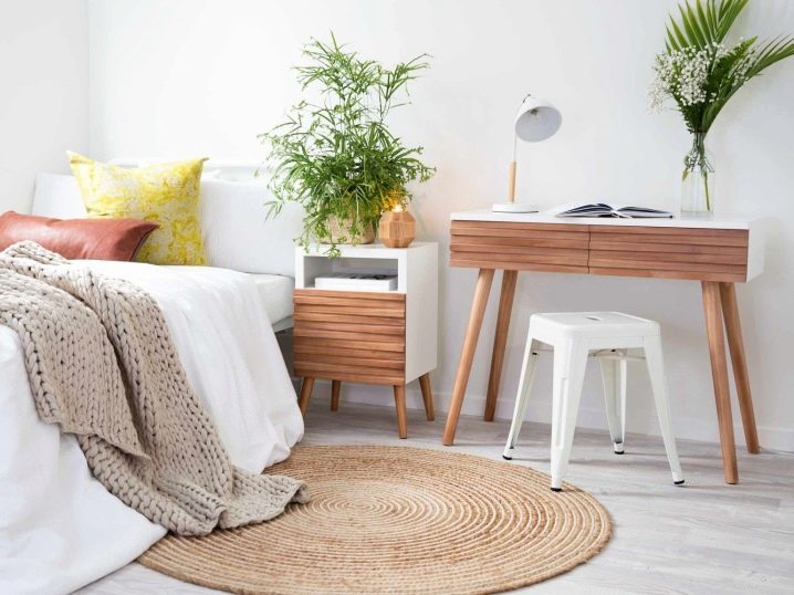 Das Prinzip der Pflege eines Nachttischs für ein Schlafzimmer hängt von seinem Herstellungsmaterial, seiner Größe und seiner Textur ab. Die Mattentypen können ausgeschüttelt und gewaschen werden. Modelle mit kurzen Haaren mit einem Staubsauger reinigen.