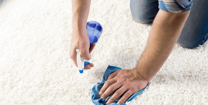 Die Reinigung kann je nach Materialart trocken oder nass erfolgen. Es ist besser, das Produkt mit speziellen Teppichprodukten zu handhaben. Ihre Wirkung zielt darauf ab, die Oberfläche vor Hausstaubmilben, Flecken und Schmutz zu reinigen und zu schützen.