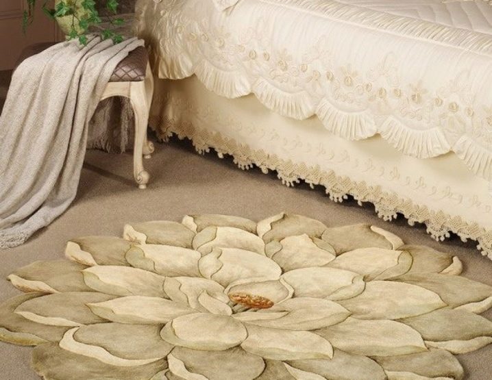 Bettvorleger sind ziemlich weich und strukturiert. Sie bieten den Komfort, den Benutzer aus dem Bett zu holen. Teppiche sind oft beständig gegen Ausbleichen und Verformung während des Gebrauchs. Sie haben eine Massagewirkung, sind gut für die Beine und oft hypoallergen.