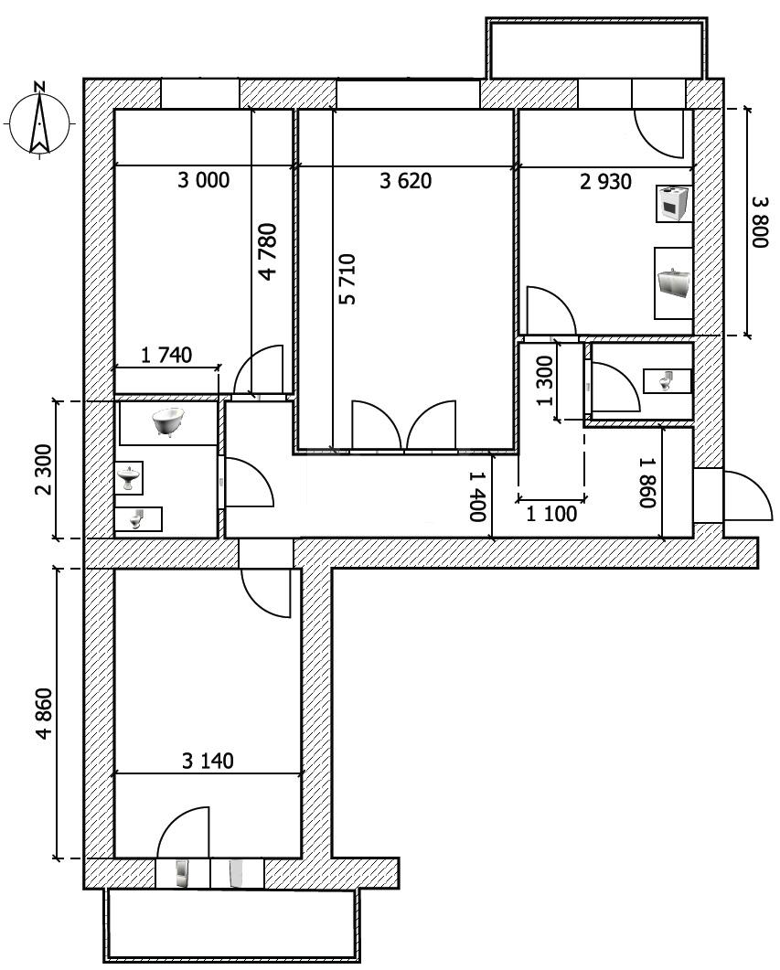Aufteilung von 3-Zimmer-Wohnungen in Plattenhäusern