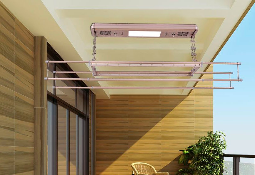 Teurere elektrische Deckentrockner verfügen über mehrere einziehbare Abschnitte mit LED-Beleuchtung und Heizfunktion.