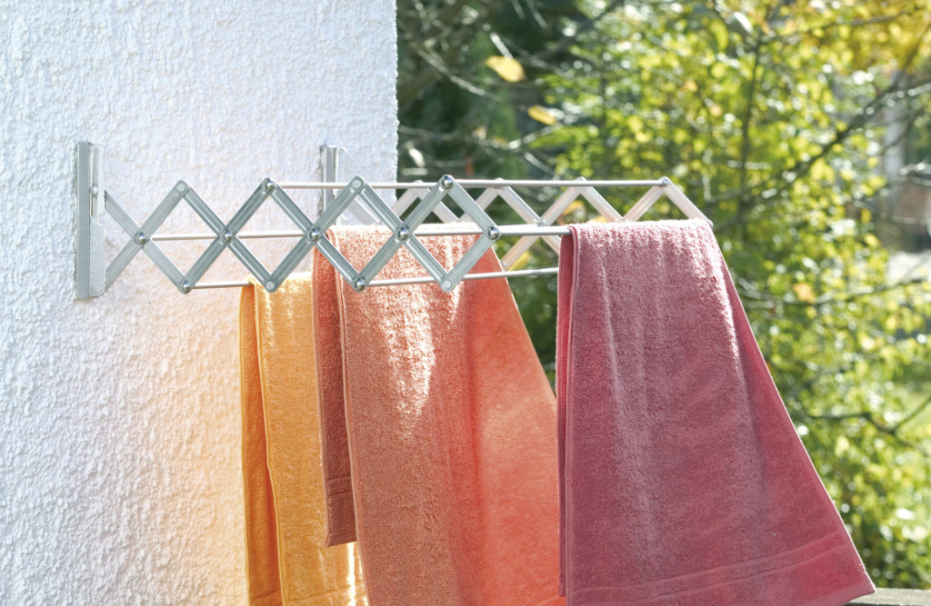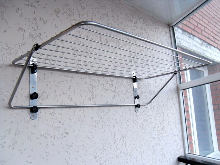 Dies ist eine klassische Version von Wäschetrocknern, die an den Wänden von Balkonen und Loggien installiert werden. Sie unterscheiden sich in Größe und Design.