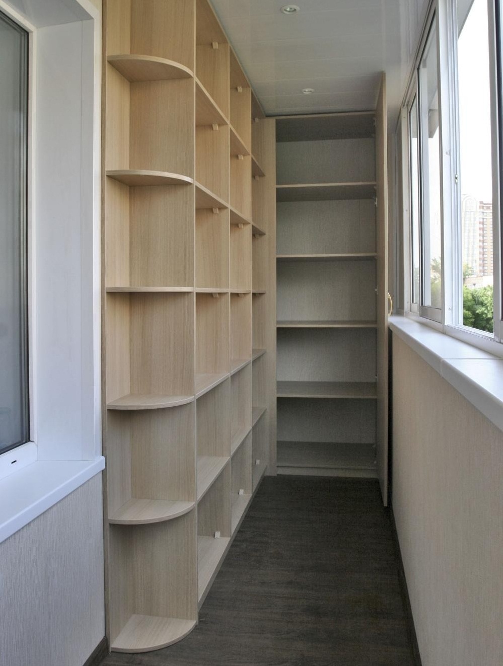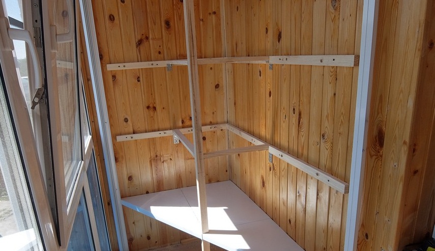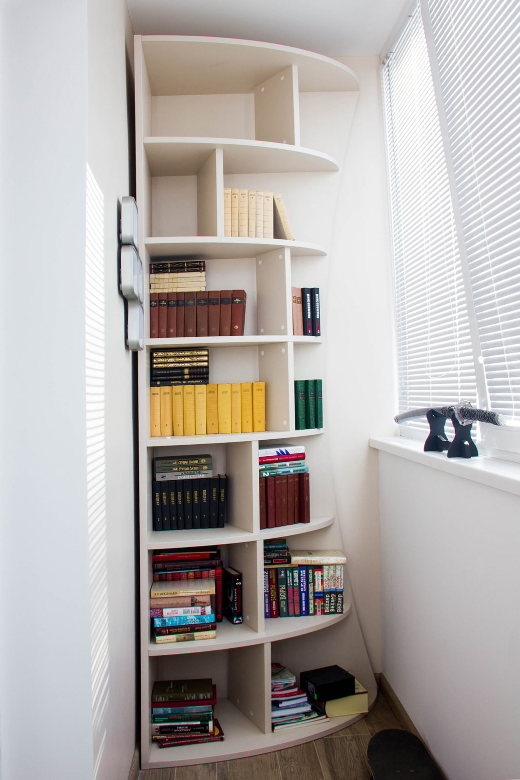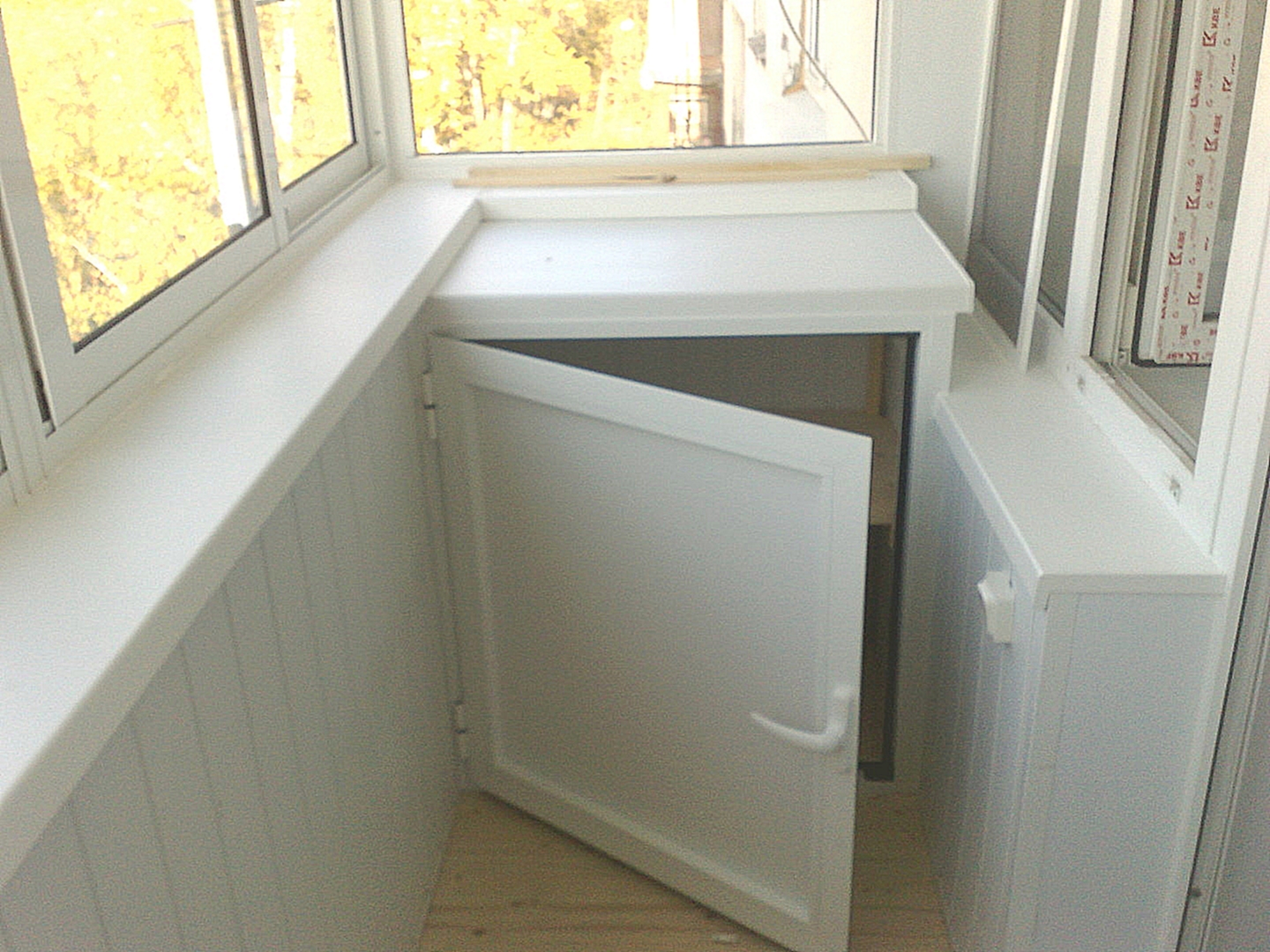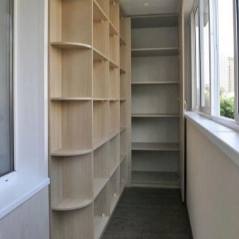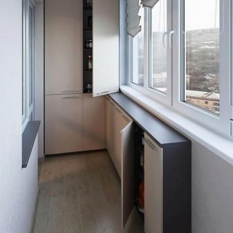 Eine gut eingerichtete Loggia dient nicht nur zum Entspannen, sondern hilft auch, Dinge in der Wohnung unterzubringen. In Eckschränken auf dem Balkon können Sie vieles verstecken, was Sie brauchen: