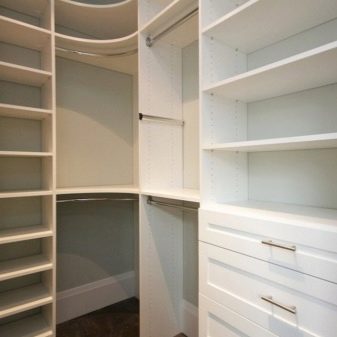 - Offen nehmen weniger Platz ein und der Inhalt ist visuell zugänglich. Solche Modelle sind nicht für die Langzeitlagerung geeignet - Dinge können sich durch ultraviolette Strahlung verschlechtern und müssen schön verlegt werden.