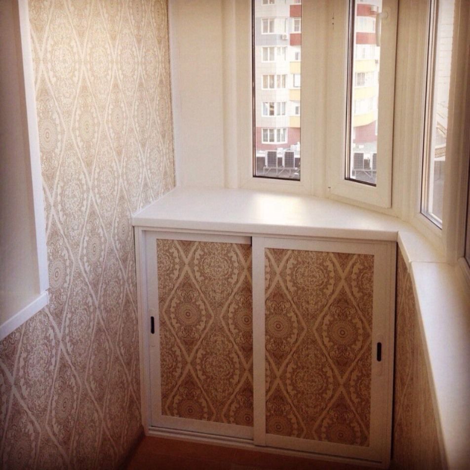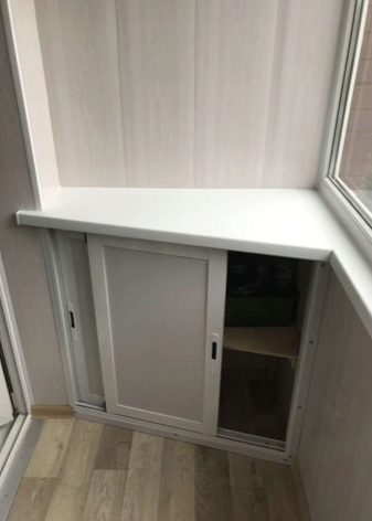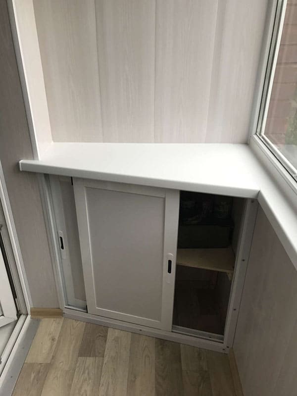 - Niedriger Schrank kann unter einer breiten Fensterbank installiert werden.
