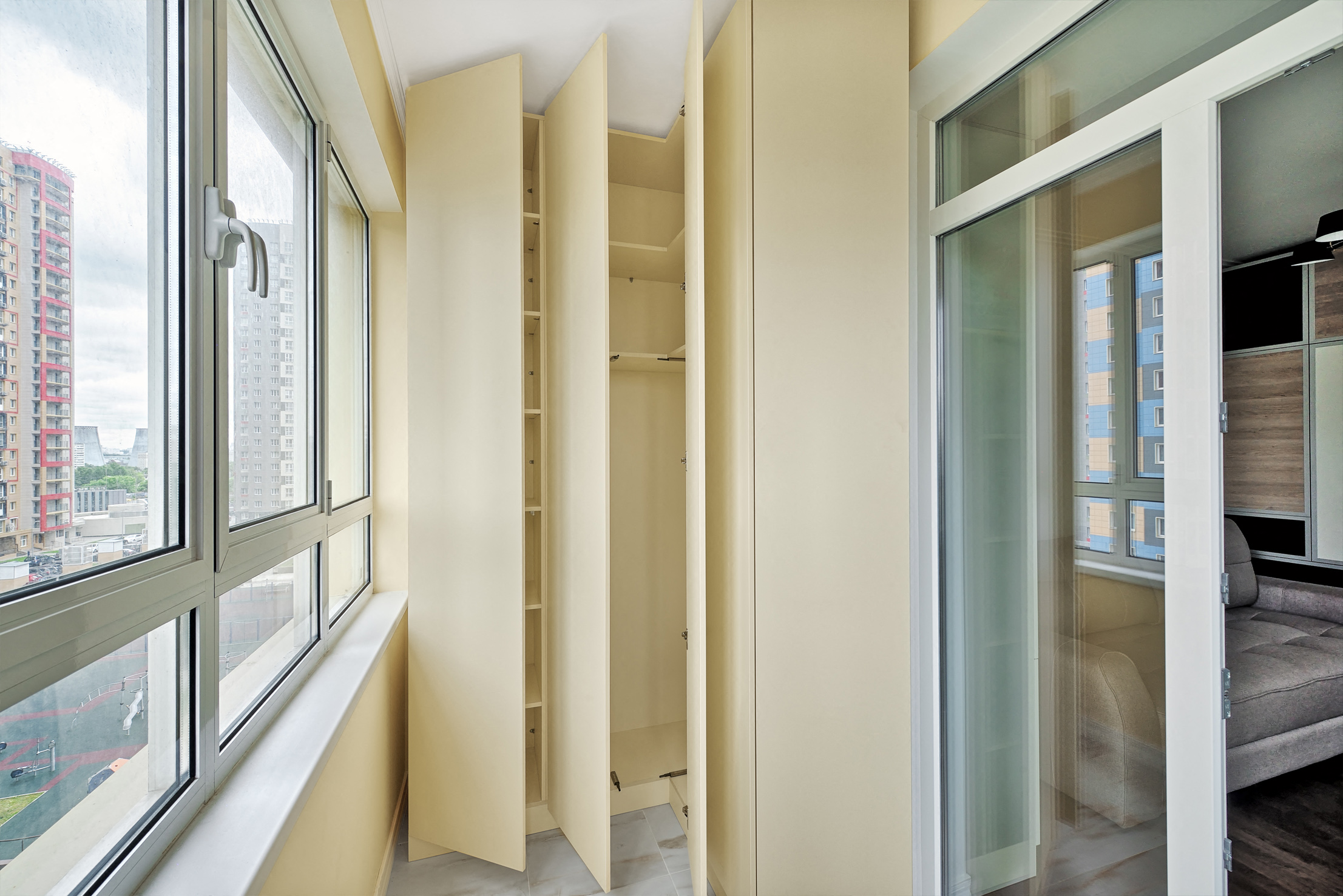 - ein in der allgemeinen Farbe des Balkons gestrichener Kleiderschrank ist fast unsichtbar;