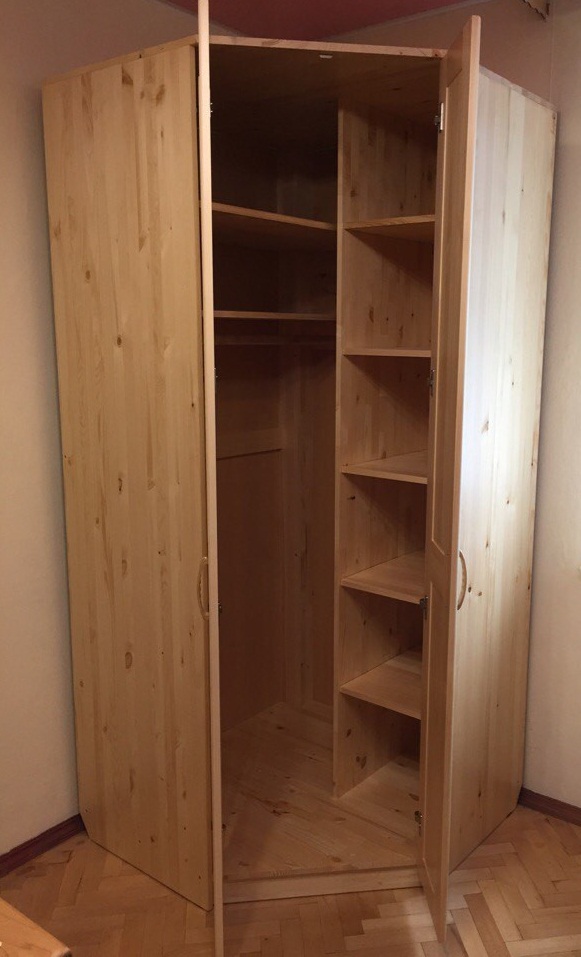 - Der L-förmige Kleiderschrank sieht massiv aus, aber es passt alles hinein;
