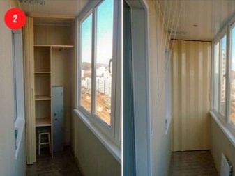 Wenn wir über typische Plattenhäuser sprechen, kann der zusätzliche Raum nicht mit einem Filmmaterial aufwarten - dies ist eine Fläche von 2 Quadratmetern. Es ist einfach unmöglich, massive sperrige Möbel darauf zu stellen. Diese Loggia hat jeweils eine rechteckige Form und die Schließfächer haben ähnliche Eigenschaften.
