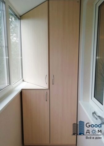 In modernen mehrstöckigen Gebäuden sind Balkone entweder eckig oder abgerundet. Für einen atypischen Raum müssen die Möbel nach individuellen Maßen hergestellt werden. Es ist ziemlich problematisch, Fertigprodukte im Geschäft zu kaufen - in diesem Fall müssen Sie die Parameter der Möbel anpassen, damit die rechteckige Tür leicht befestigt werden kann.