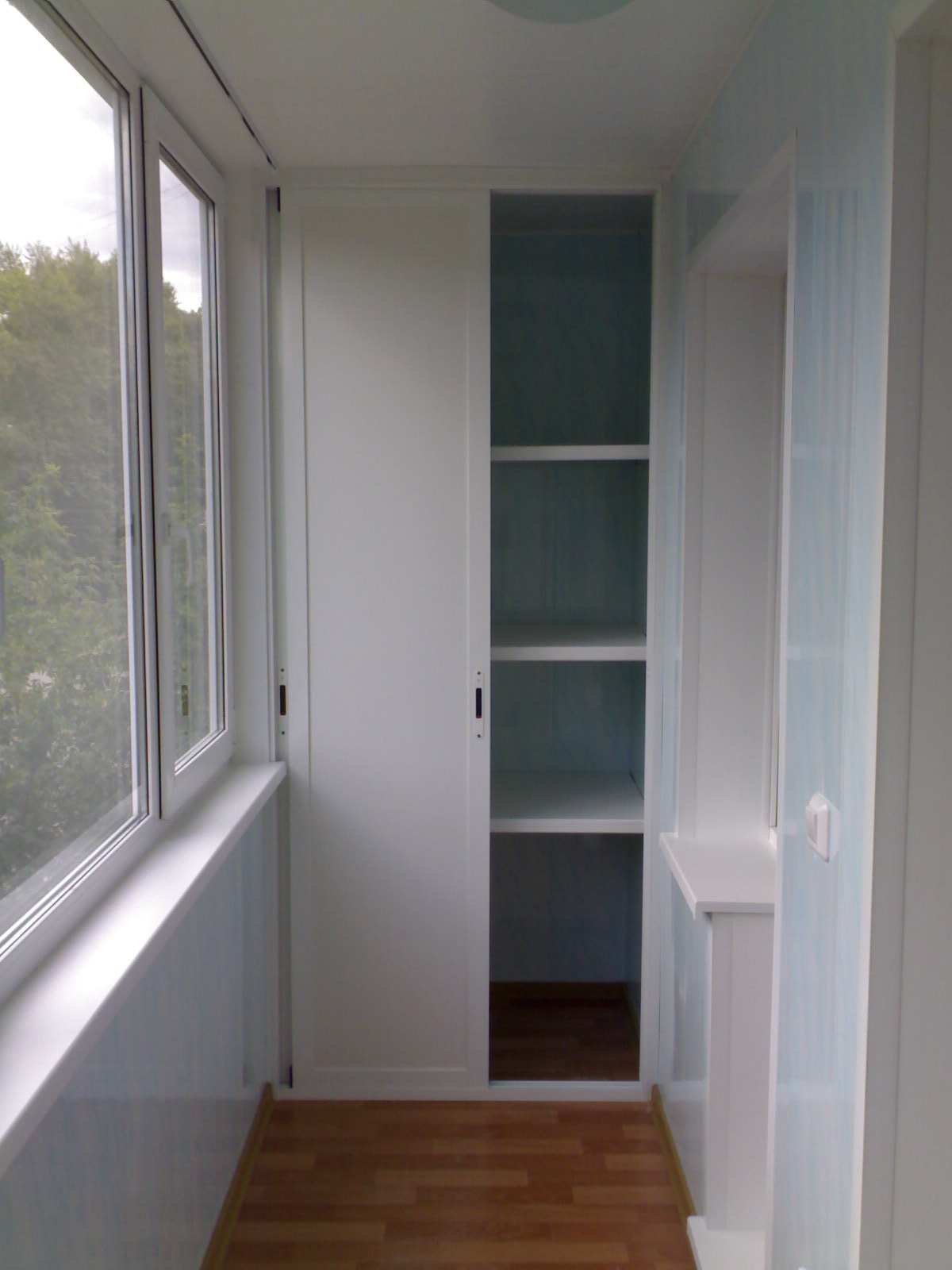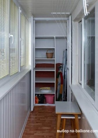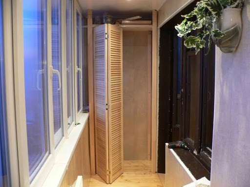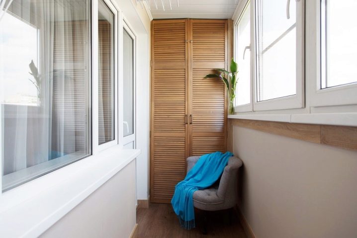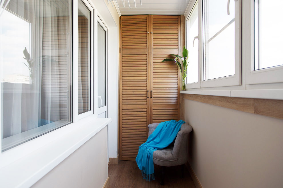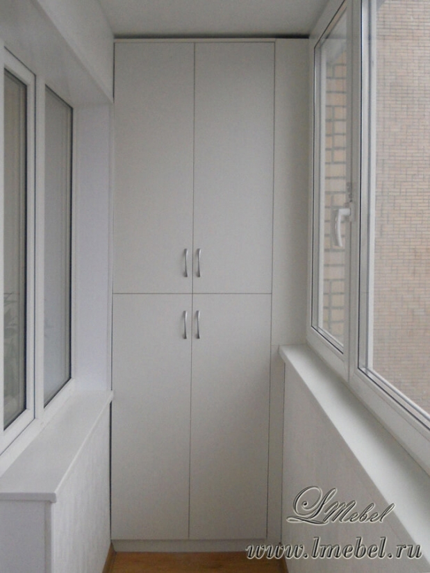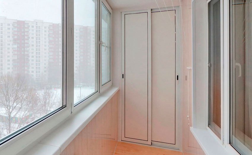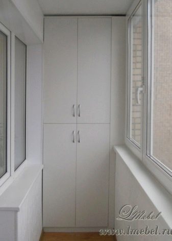 In den allermeisten Fällen befindet sich ein Einbauschrank auf einer Loggia in der Nähe der Tür - dort befindet sich ein kleiner Raum zur Aufbewahrung selten gebrauchter Gegenstände.