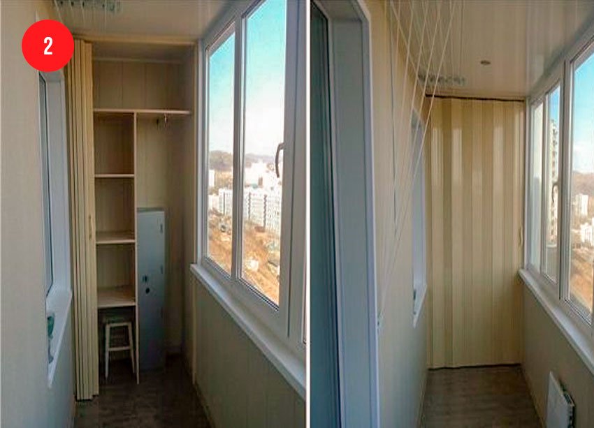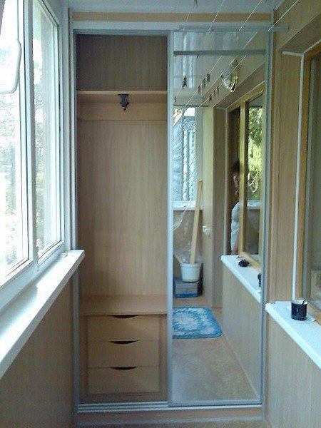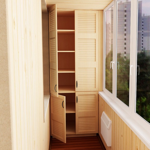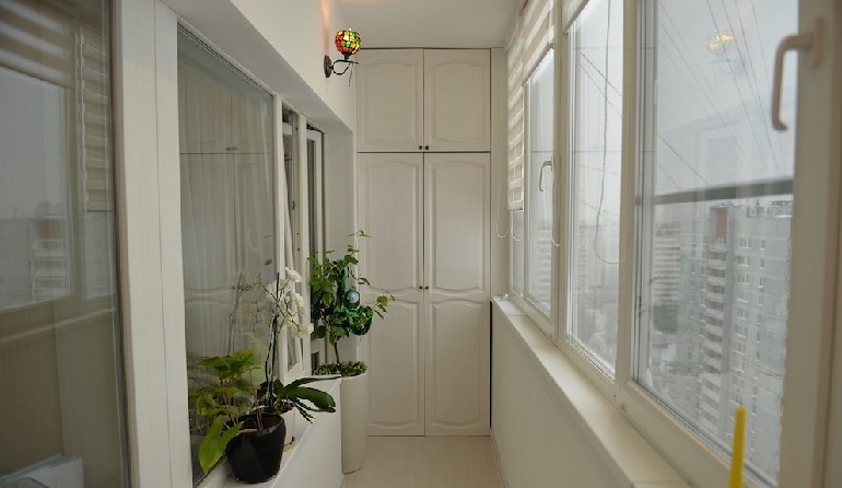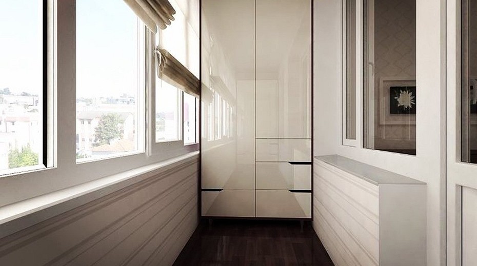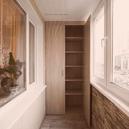 - Platz sparen - Nach der Montage eines Einbauschranks auf der Loggia und dem Verschieben eines Teils von Gegenständen aus anderen Wohnräumen dorthin wird es möglich, die Nutzfläche der Räume funktionaler zu verteilen.