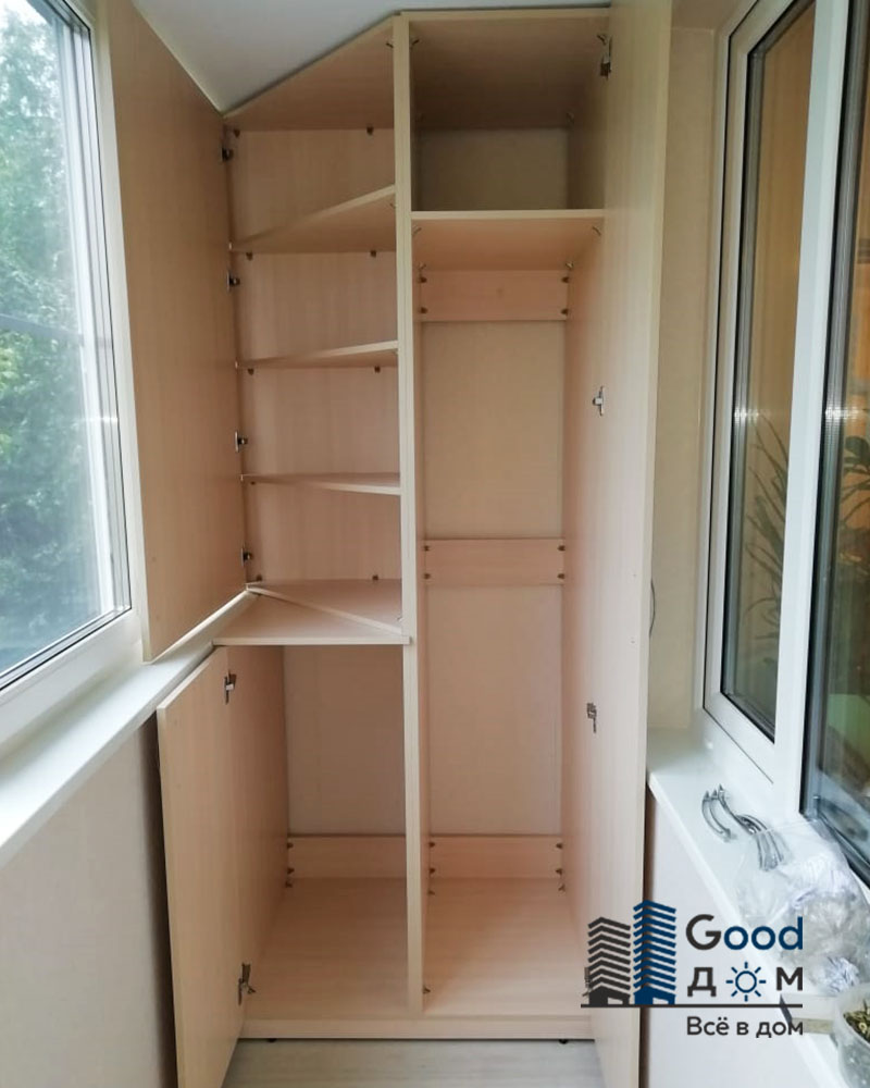 - Vielseitigkeit - Einbaumöbel sind vielseitig einsetzbar. Die Hauptsache ist, zu entscheiden, was genau Sie dort aufbewahren werden - Konserven für den Winter, Werkzeug oder saisonale Kleidung. Und wenn Sie auf dem Balkon ein gemütliches Lesezimmer einrichten möchten, können Sie Bücher in den Regalen markieren.