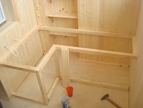 Der Rahmen besteht aus Holz mit den Querschnittsparametern 45x45 oder 50x50 mm - dies ist eine gute Option für einen geschlossenen Raum. Wenn der Raum nicht beheizt wird, beginnt sich das Holz unter dem Einfluss von Feuchtigkeit zu verformen. Außerdem sind diese Materialien in vielen Regionen recht teuer. Eine praktischere Lösung wäre, den Rahmen auf den Profilen für die Gipskartonplatte zu montieren.