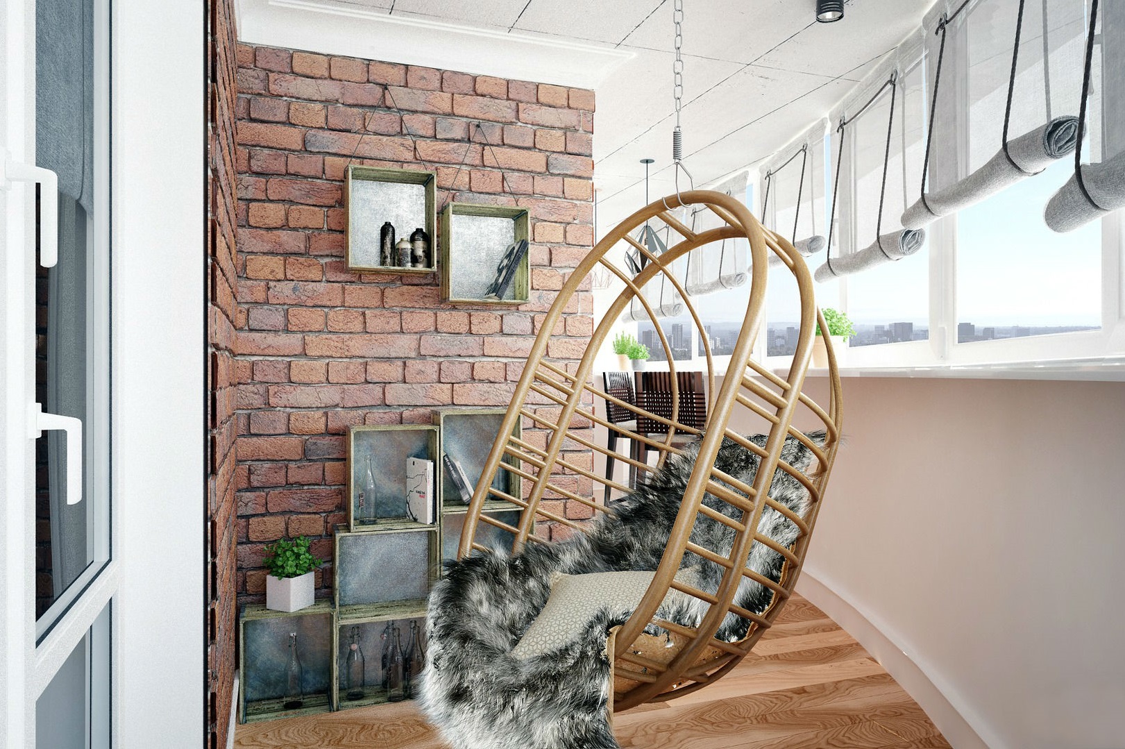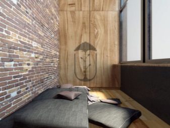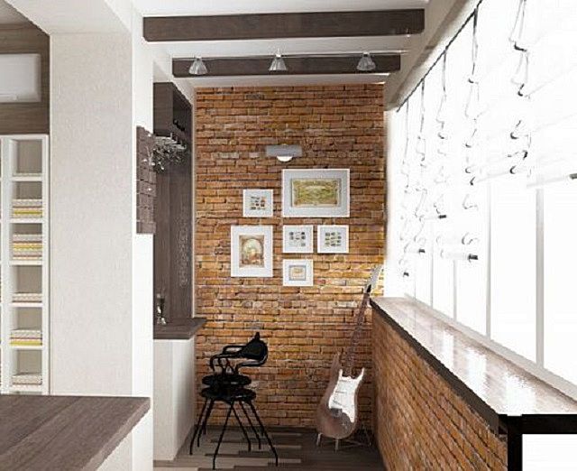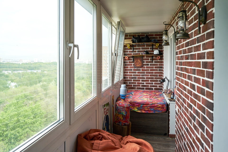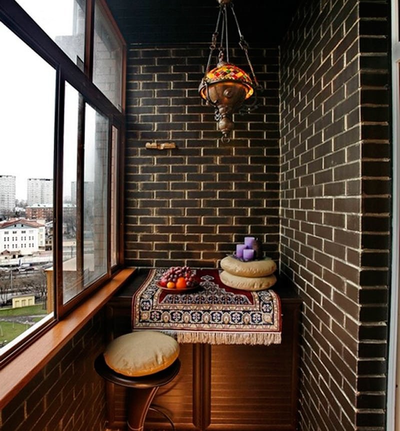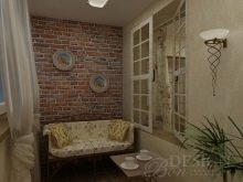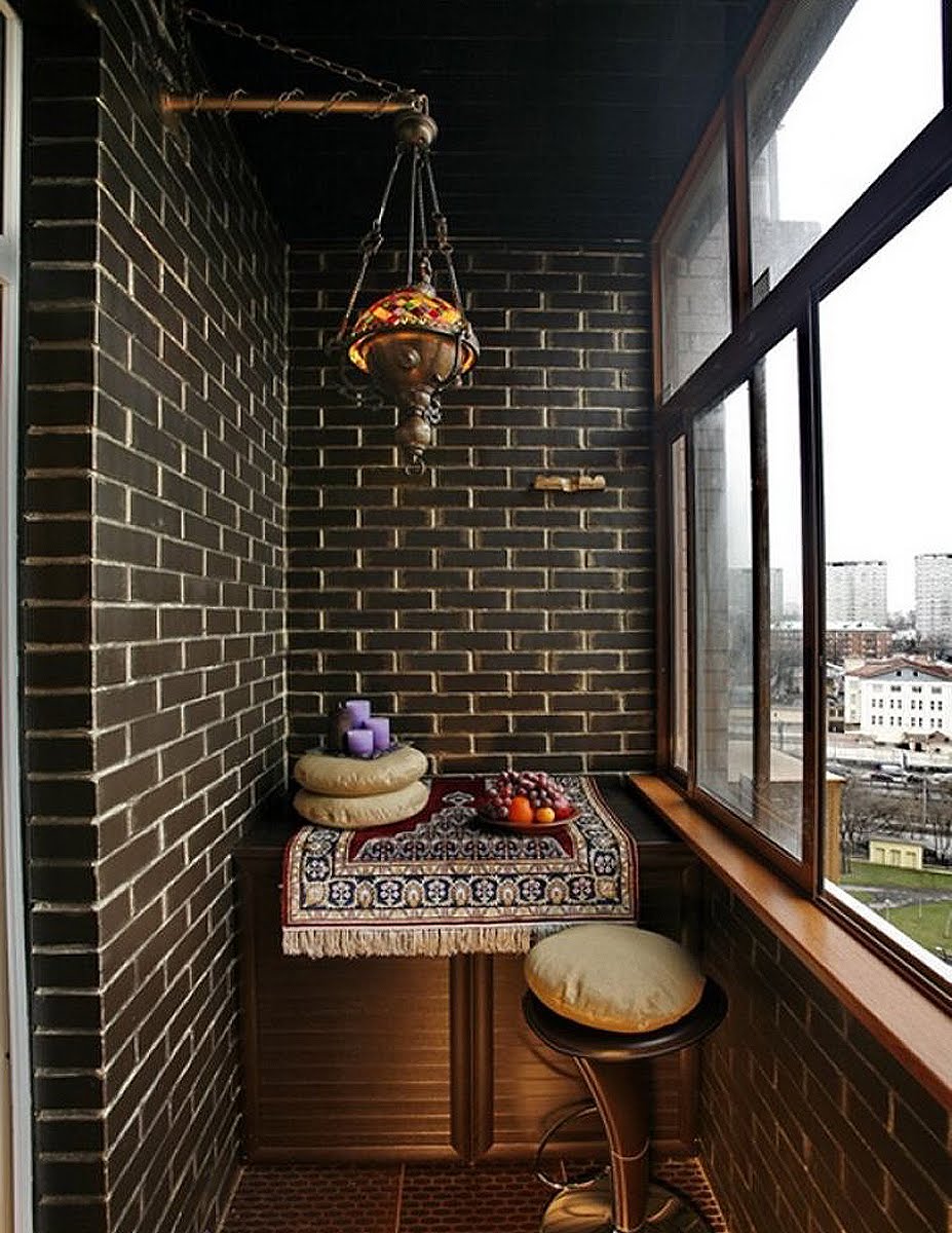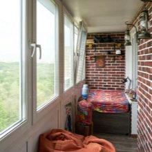 Wenn auch andere Räume in der Wohnung "wie Ziegelstein" eingerichtet sind, kann die Lösung des Balkons in der gleichen Art der Ausführung ebenfalls überflüssig sein. Damit es nicht wie eine Innenraumsuche aussieht, müssen Sie den Designer kontaktieren – er weiß, wo die Grenze zwischen Übermaß und Originalität liegt.
