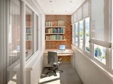 - Alles in einer Farbe mit monochromen Zusätzen - so haben sich die Eigentümer entschieden, diesen Balkon auszustatten. Nun, für die Gestaltung des Arbeitsplatzes ist es sehr gut, nichts wird ablenken, die Atmosphäre ist ruhig und förderlich für Routineaufgaben.