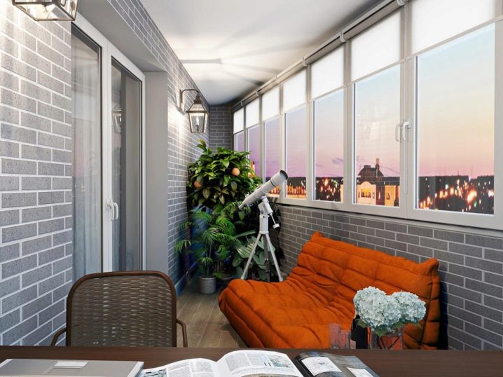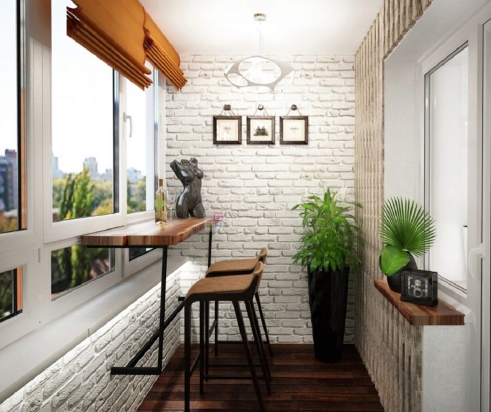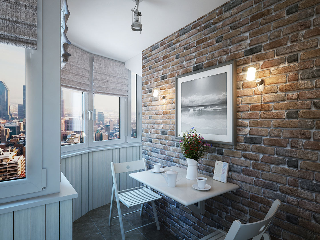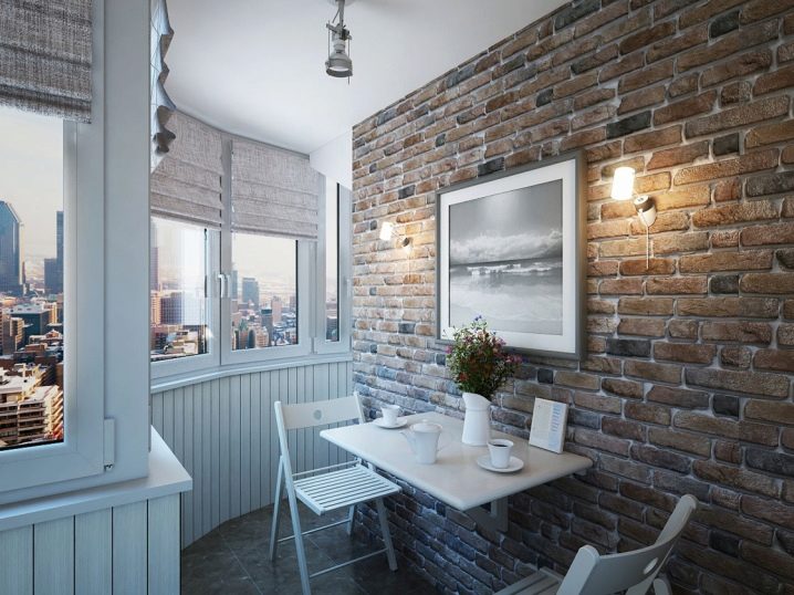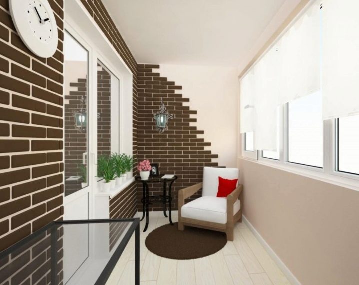 Der Balkon kann durchaus zum Highlight der Wohnung werden, wenn er nicht ein gesichtsloser Aufbewahrungsort für alles auf der Welt ist, sondern eine lakonische und nachdenkliche Ecke, die dem Auge gefällt. Wenn Sie darüber nachdenken, einen solchen Raum zu dekorieren, möchten Sie eine diskrete, aber attraktive Option wählen, die Gemütlichkeit und einen ruhigen Hintergrund garantiert. Dies kann ein Ziegelstein oder Materialien sein, die ihn imitieren.