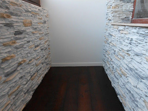 Vielleicht wird die Akzentwand damit ummantelt, und der Rest der Veredelung erfolgt mit Putz "Borkenkäfer" - ein ziemlich häufiger Fall.
