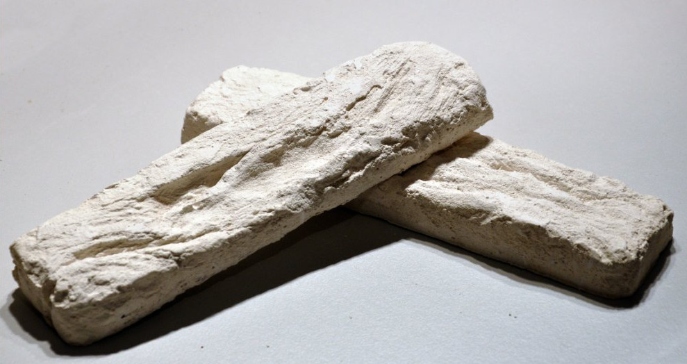 - Gipsfliesen. Dieses Material ist umweltfreundlich, feuerbeständig, einfach zu installieren und kostengünstig. Interessant ist, dass Sie es mit rechteckigen Formen, Gipspulver, PVA-Kleber, brauner Acrylfarbe und Wasser selbst machen können.