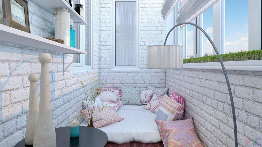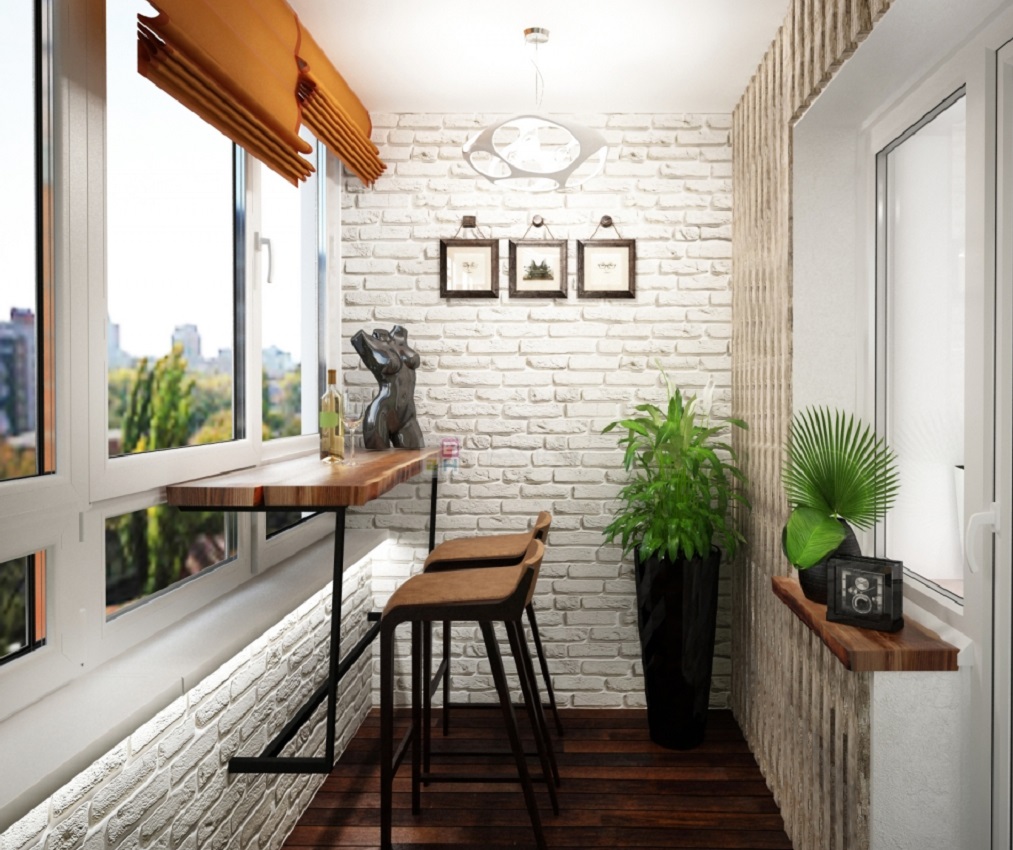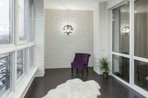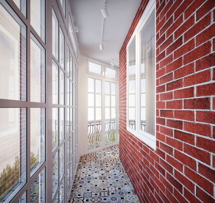 - Komplette Veredelung. Das bedeutet, dass alle Wände „wie ein Ziegelstein“ verziert sind. Eine solche Verkleidung sieht toll aus, wenn sich auf dem Balkon ein riesiges Panoramafenster befindet.