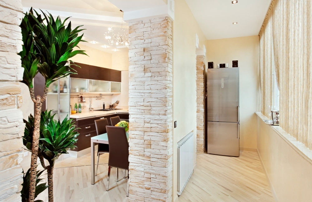 - Manchmal bestehen Zweifel an der vollständigen Abdeckung der Wände mit Mauerwerk. Und wenn der Ausgang zur Loggia mit einem Bogen verziert ist, ist Ziegel eine hervorragende Option, um ihn abzudecken und zu betonen.
