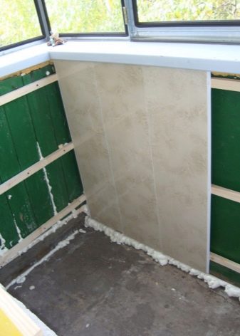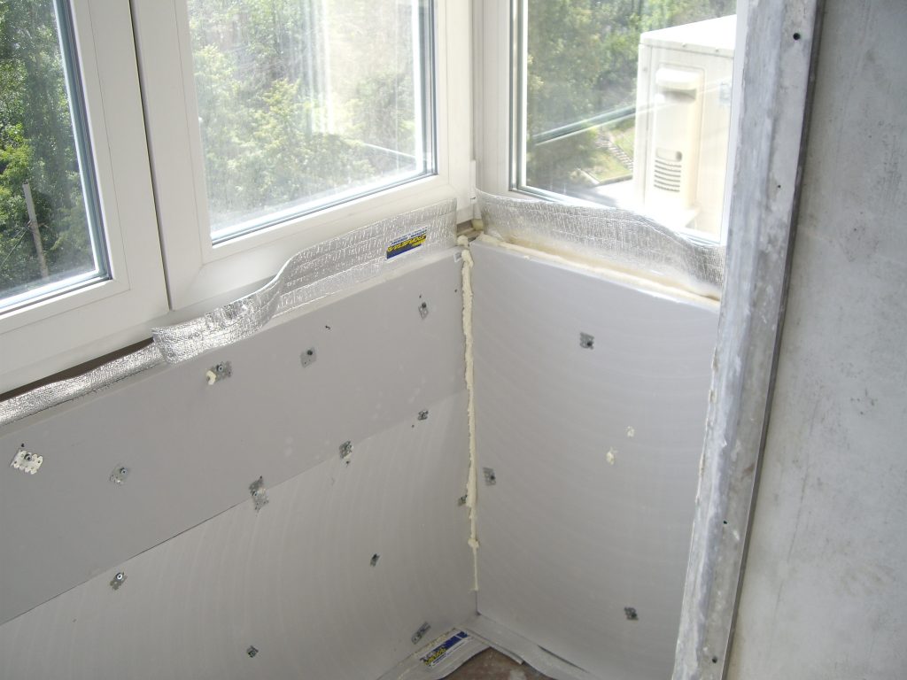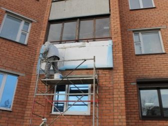 Zur Außendämmung empfiehlt es sich, Schaumstoff zu verwenden. Nach der Installation muss diese verspachtelt werden, um sie vor Niederschlag zu schützen. Eine negative Eigenschaft der Außendämmung ist die Unzugänglichkeit, wenn sich der Balkon in einer Höhe von 3 Metern oder mehr befindet.