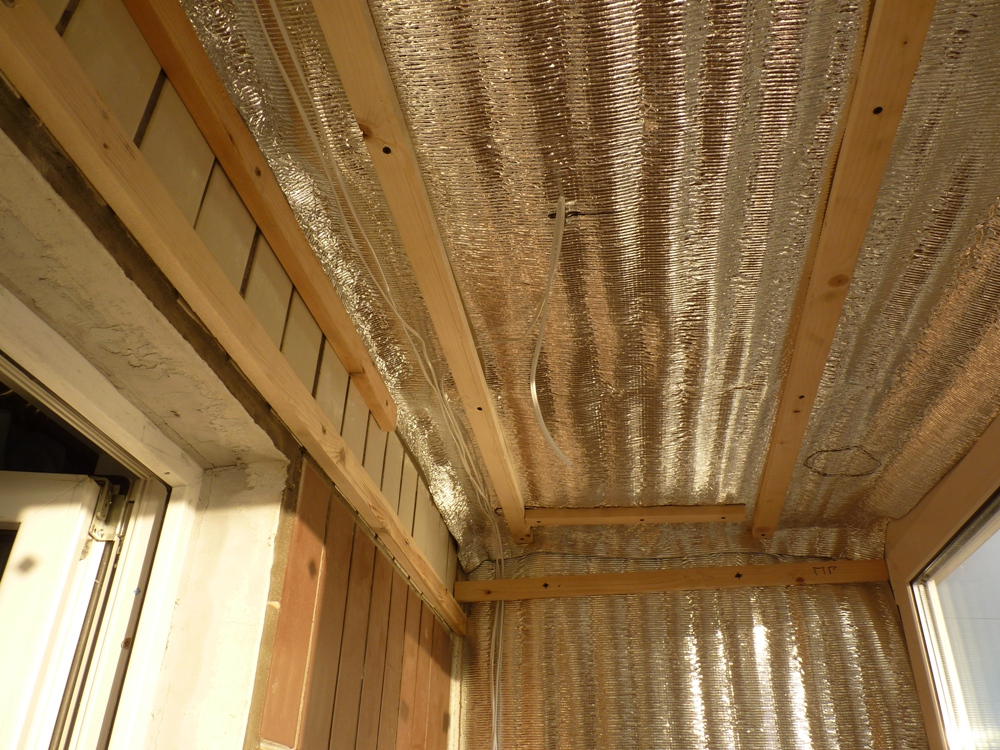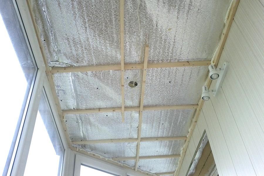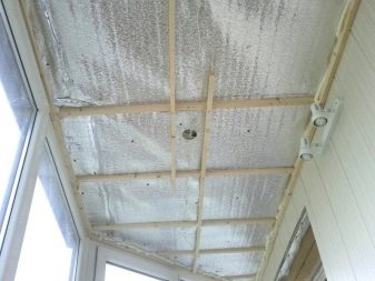 Die Deckendämmung erfolgt etwas anders als der Boden. Einfach gesagt, alles muss kopfüber gemacht werden, also müssen alle Arbeiten mit Schutzbrille durchgeführt werden. Die erste Stufe der Deckendämmung ist die Markierung und Installation der Lattung. In dieser Phase müssen Sie das richtige Markup vornehmen. Für diese Konstruktion sind Holzbalken mit einer Dicke von 50 mm geeignet. Sie müssen mit einem Locher im Abstand der Dämmstoffbreite parallel zueinander befestigt werden.