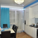 Um die Decke optisch anzuheben, das abgerundete Gesims wird normalerweise so nah wie möglich an der Decke befestigt und die Vorhänge werden daran befestigt. Auf Wunsch werden solche Textilien in Luftfalten auf beiden Seiten der Fensteröffnung gesammelt.