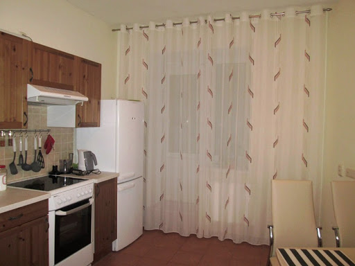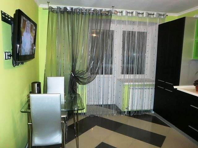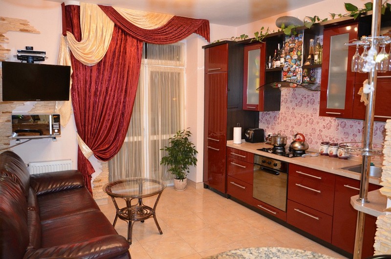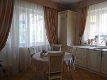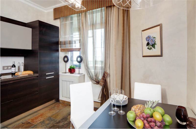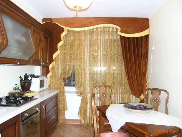 Dies sind wirklich elegante und schicke Vorhänge. Seide ist jedoch launisch im Service. Das Material verschmutzt schnell, daher ist eine Verwendung im Küchenblock nicht gerechtfertigt.