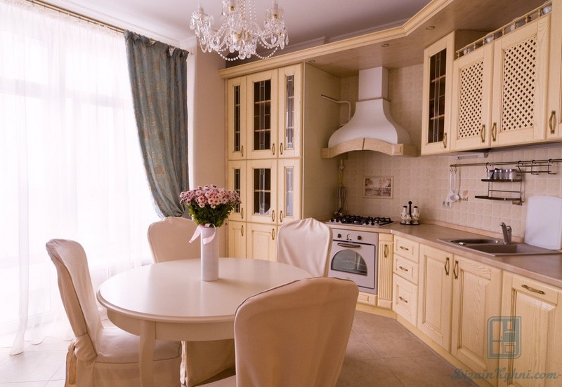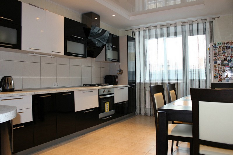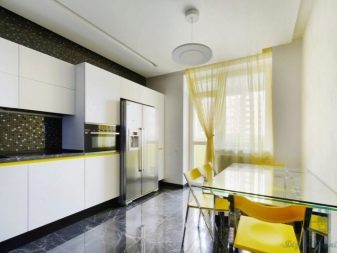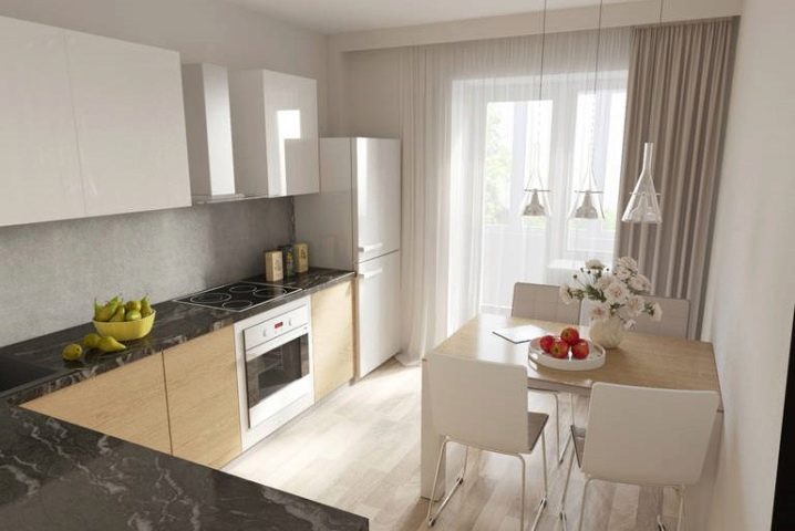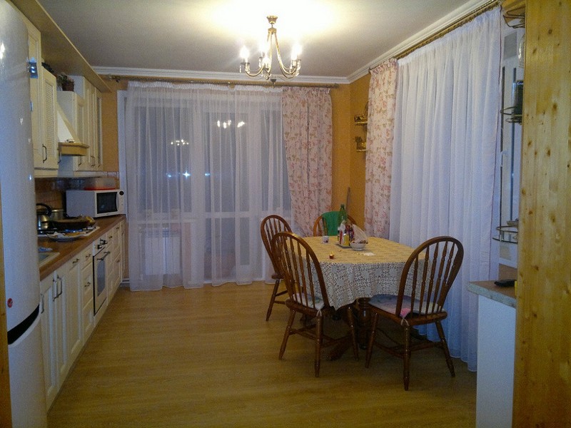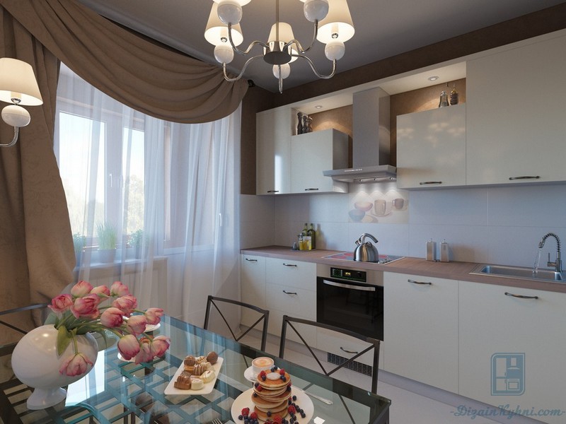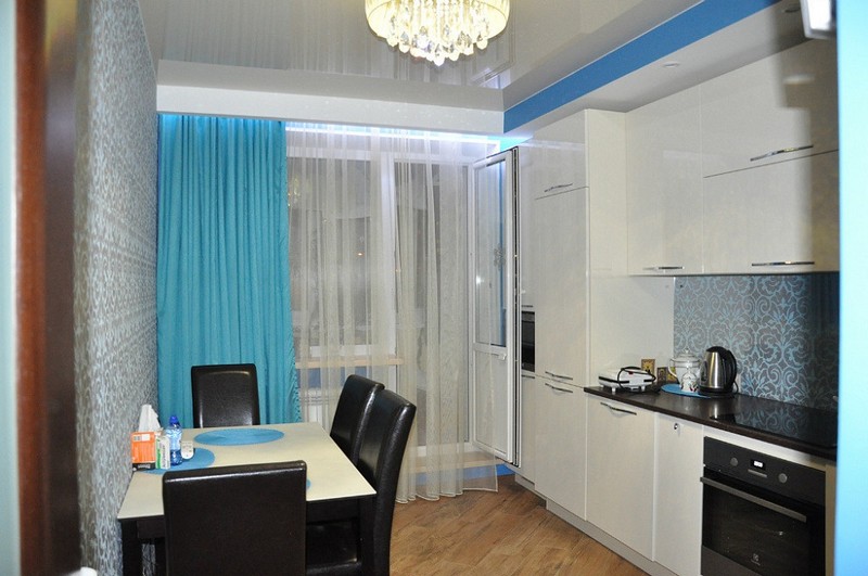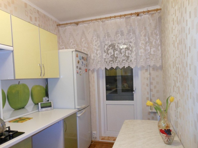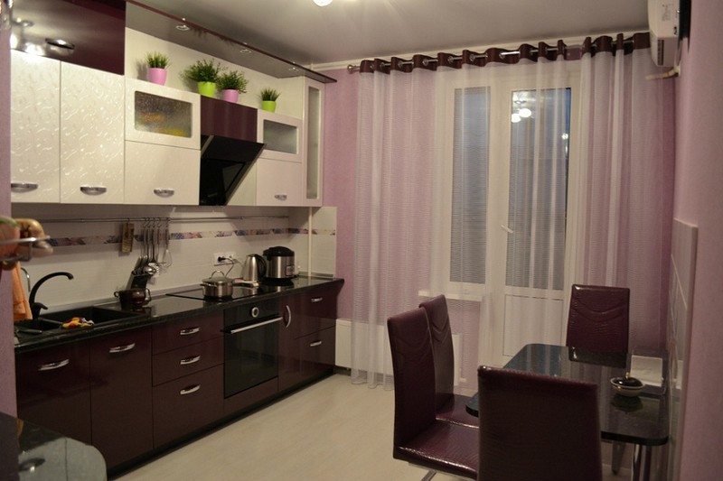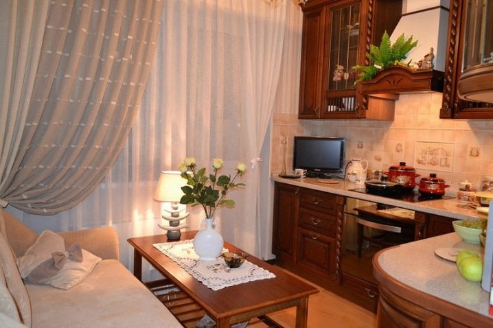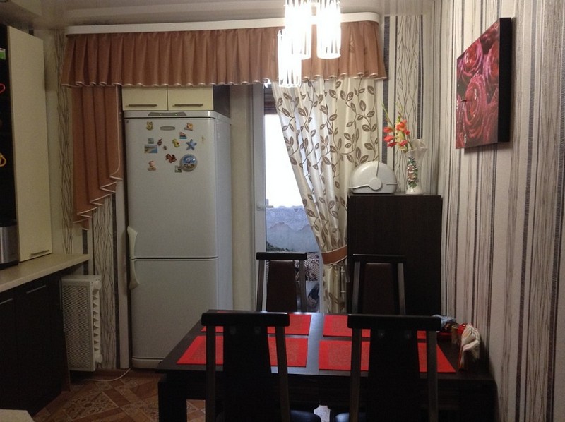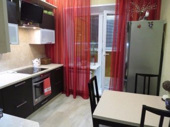 Vorhänge werten das Kücheninterieur auf. In Räumen mit Balkon erfüllen sie eine Reihe wichtiger Aufgaben: